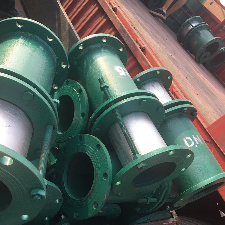 JSQ-B型雙法蘭限位伸縮器JSQ-B型雙法蘭限位伸縮器又稱雙法蘭限位伸縮器,雙法蘭限位伸縮器。該產(chǎn)品解決了原限位伸縮器不產(chǎn)生偏角的問題,大偏角可達(dá)5.85度。伸縮器本身不能承受軸向拉力,一般將它安裝在平直管道上。若靠近彎管或丁字管安裝則應(yīng)設(shè)置管道支墩,以免將伸縮器拉脫而漏水。伸縮器中單盤短管可用外徑的鑄鐵直